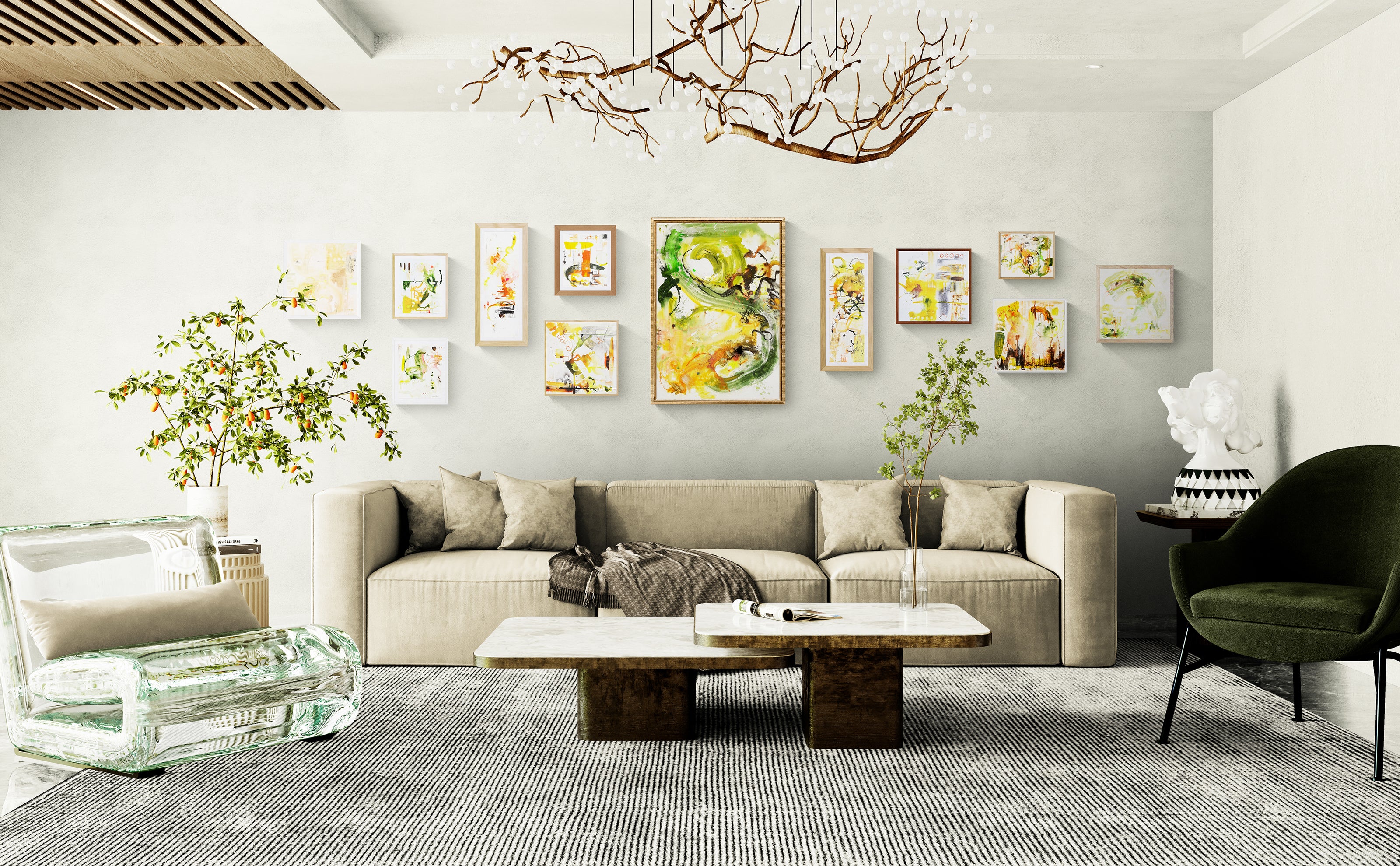 - The z yellow Collection features abstract art with a unique free-flowing style. Each painting has its own story and personality. The series includes 15 artworks on stretch canvas.